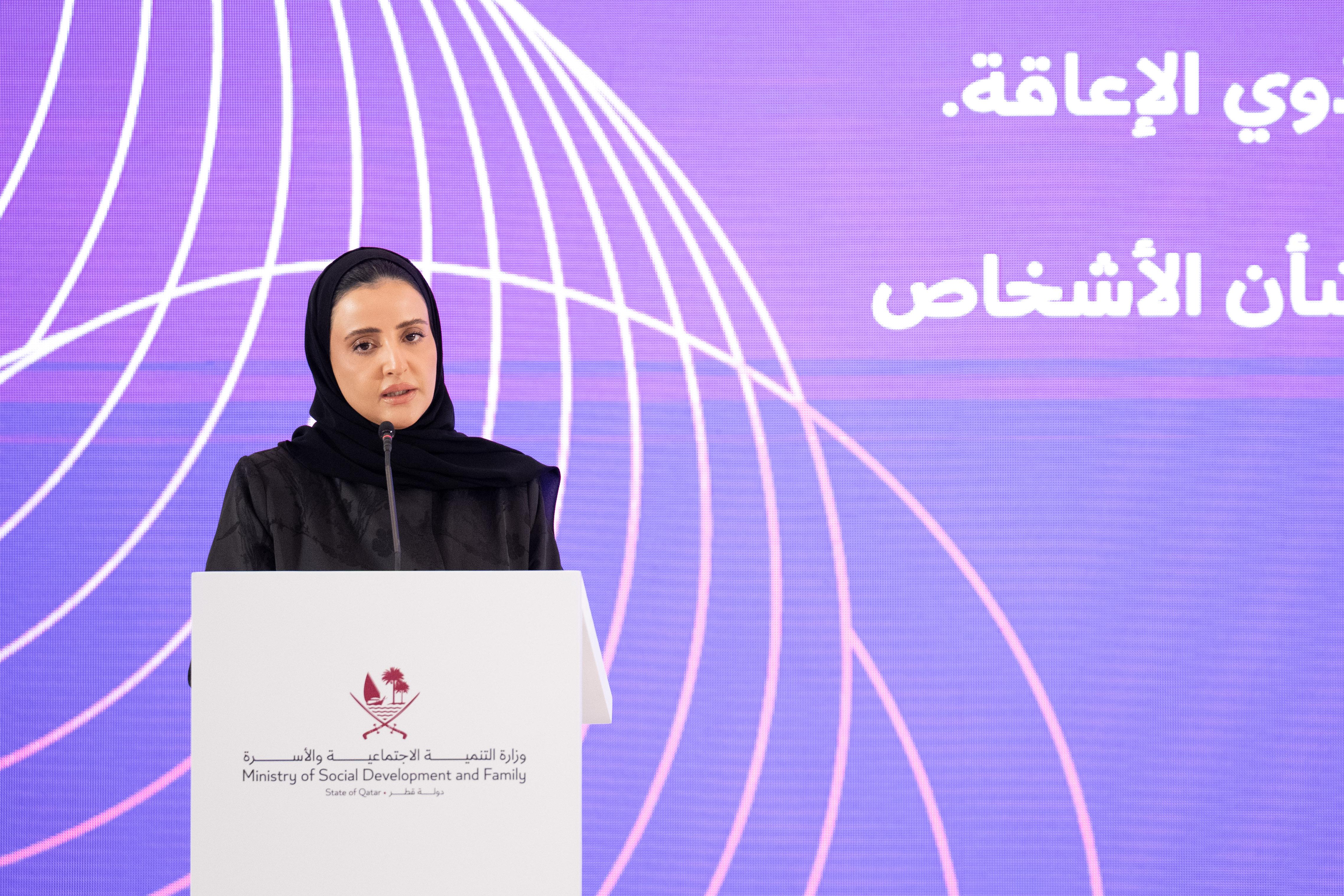 Her Excellency Maryam bint Ali bin Nasser Al-Misnad, the Minister of Social Development and Family, affirmed that the State of Qatar has contributed, during the past decades, to harnessing all possible means to care for persons with disabilities at all local and international levels.