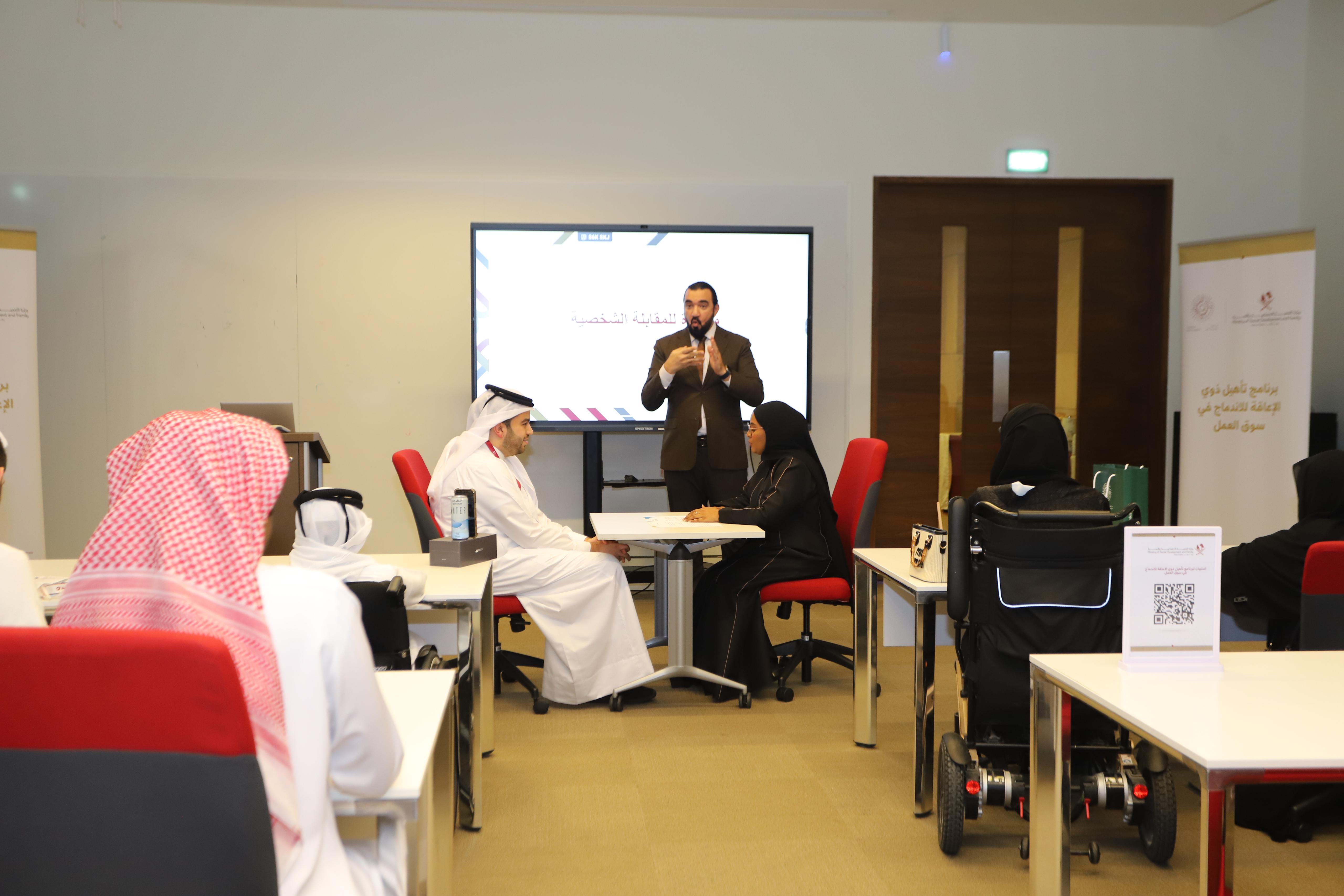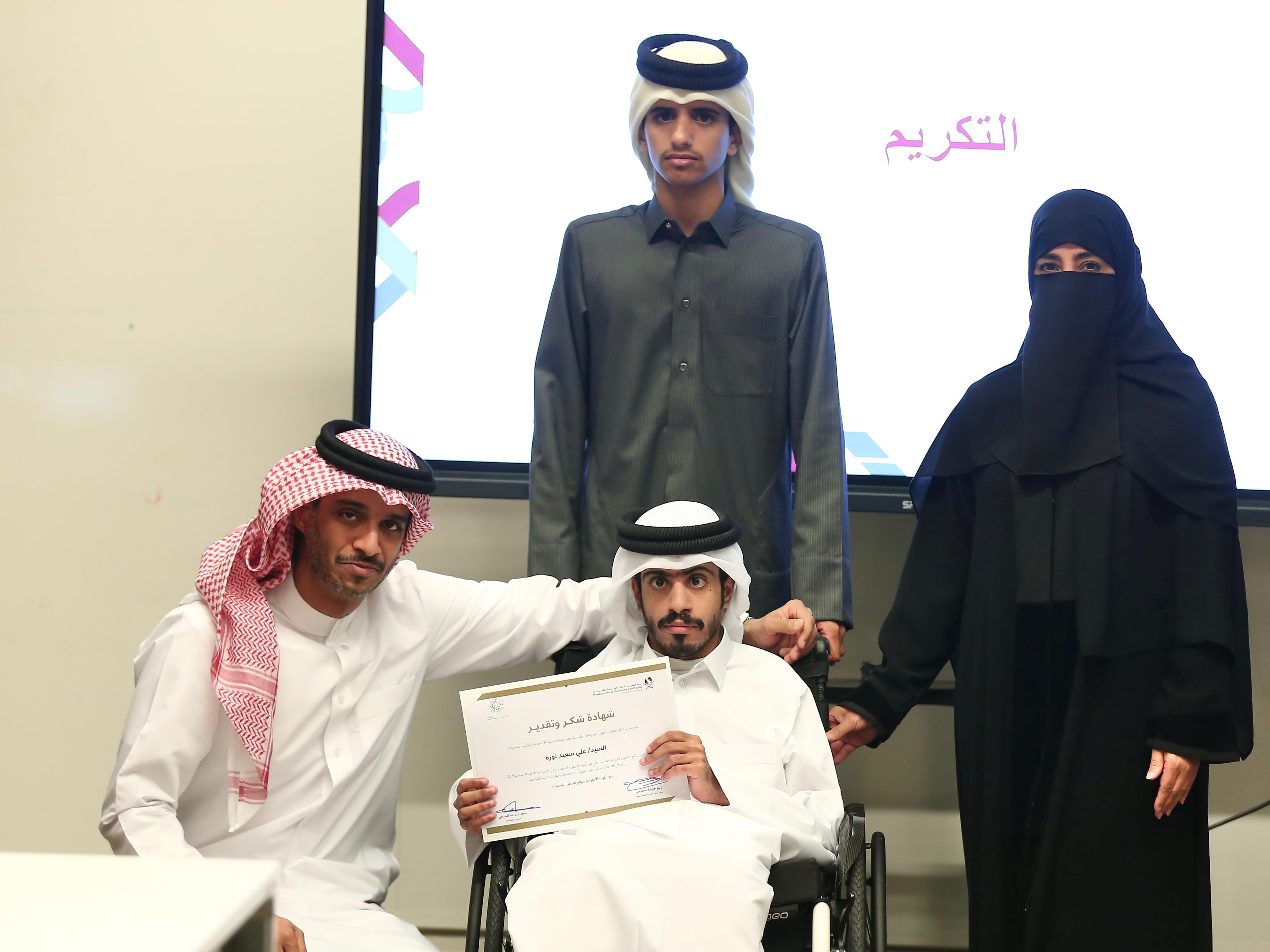 اقرأ المزيداختتمت وزارة التنمية الاجتماعية والأسرة متمثلة في إدارة الرعاية المجتمعية برنامجًا تأهيلياً لذوي الإعاقة بالتعاون مع مركز قطر للتطوير المهني -مركز من إنشاء مؤسسة قطر- وديوان الخدمة المدنية والتطوير الحكومي بعنوان “تأهيل ذوي الإعاقة للاندماج في سوق العمل” على مدى أسبوعين في ملتقى مركز طلاب المدينة التعليمية.